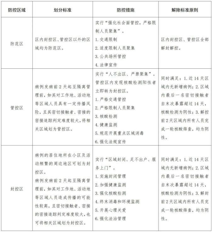 不同防控區(qū)域、社區(qū)防控措施一覽表