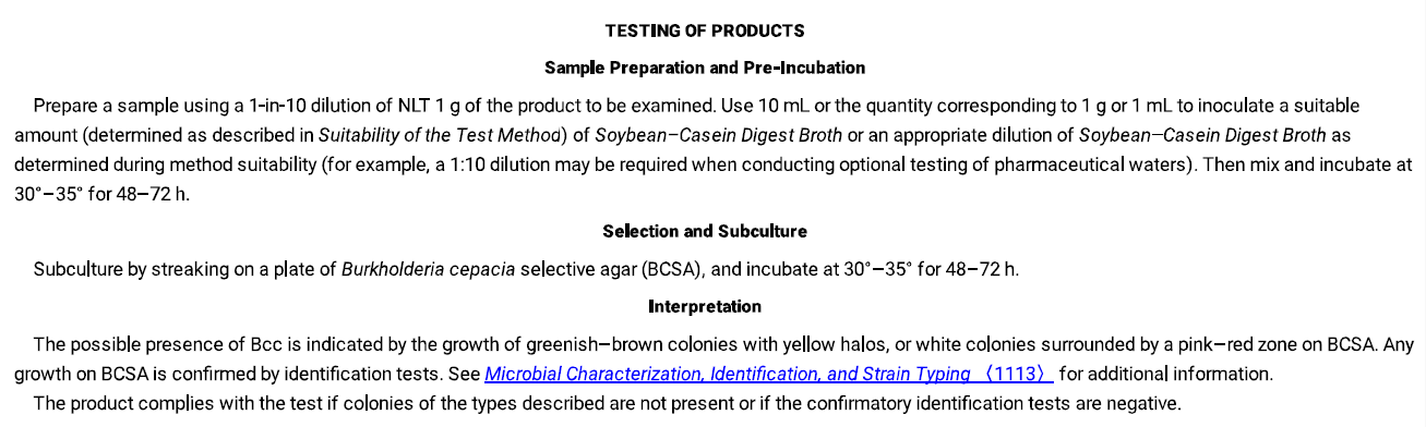 最開始,洋蔥伯克霍爾德菌并未被列入USP的控制菌檢查范圍內(nèi),它對藥品的潛在威脅性是在20189月底舉行的PDA/FDA會議中被提出。目前,USP<60> MICROBIOLOGICAL EXAMINATION OF NONSTERILE PRODUCTS—TESTS FOR BURKHOLDERIA CEPACIA COMPLEX已于2019121日生效,正式將洋蔥伯克霍爾德復(fù)合體納入了USP控制菌檢查項目。