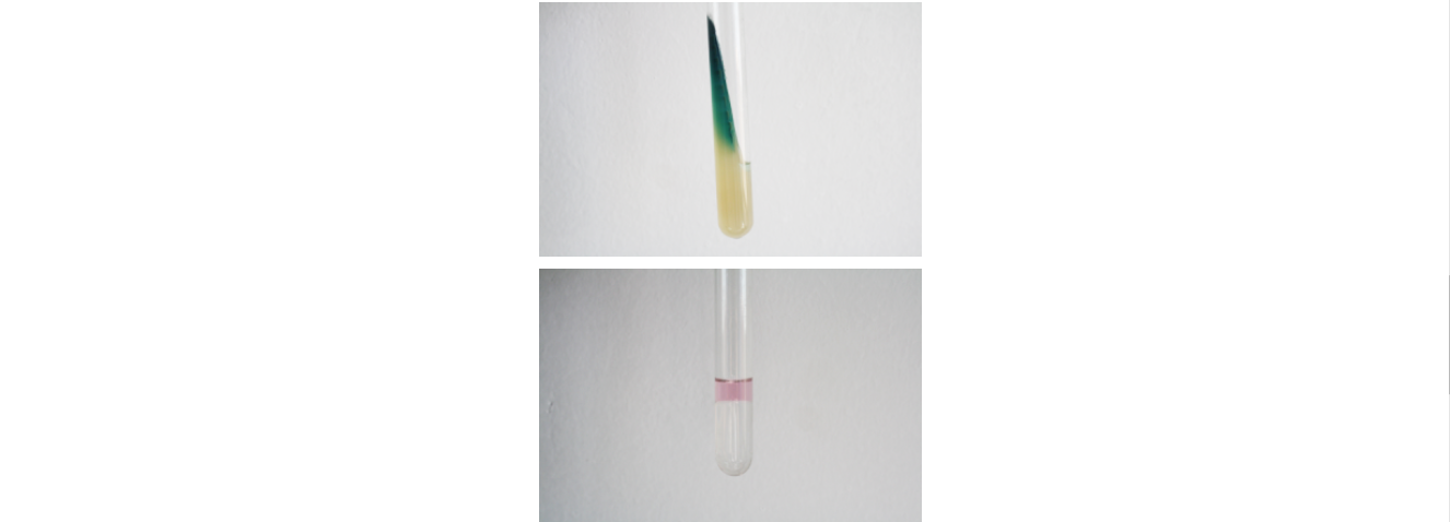原理:銅綠假單胞菌能產生的綠膿菌素能被氯仿提取,且在水中溶解度比氯仿大,并且會發(fā)生可逆的氧化還原反應,氧化時堿性呈藍色,酸性呈紅色。所以加入鹽酸溶液并震搖后,綠膿菌素會由氯仿轉移至鹽酸溶液中,并在酸性環(huán)境中呈紅色。