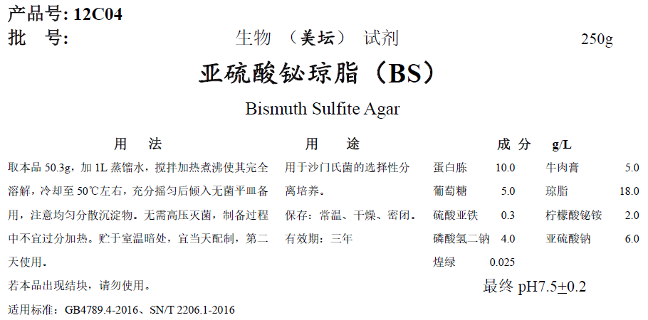 BS瓊脂培養(yǎng)基質(zhì)量要求